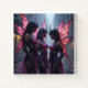 Au coeur d'une ville cyberpunk éclairée par des néons, trois fées se démarquent comme des étincelles vivantes de rébellion. Leurs ailes, un rouge crimson frappant, ne sont pas le genre délicat, gossamer des fées traditionnelles, mais sont au contraire élégantes et mécaniques, avec des circuits lumineux et des veines métalliques qui pulsent avec énergie. Chaque aile est un chef-d'oeuvre du design cybernétique, alliant beauté organique et technologie futuriste. Leurs tenues sont un mélange audacieux de violet et de noir, avec des costumes de corps élégants et moulurés, ornés d'accents de néon brillants et de motifs holographiques. Leur présence rappelle que même dans un monde d'acier et de circuits, magie et beauté peuvent prospérer.