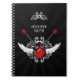 Le carnet personnalisé avec l'illustration de rock comportant deux a croisé les guitares électriques avec des ailes et les embellissements baroques vintages sur rouge, le blanc et le noir.