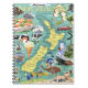 Carnet de la carte de la Nouvelle-Zélande. © Radenbrea Studios à Zazzle. Un carnet avec un kiwiana rétro et la Nouvelle-Zélande carte design sur la couverture.