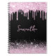 Vous pouvez customiser le script de style manuscrit moderne pour créer votre propre carnet vierge pour son bureau à domicile. Ajoutez une initiale de monogramme pour créer une combinaison initiale de prénom. Ce design est composé de gouttes de parties scintillant en faux rose ceinturé et d'arrière - plan noir. Ce sera parfait comme cadeau personnalisé.