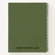 Parfait pour les gauchers, ce carnet vert olive porte un nom personnalisé dans la typographie de bloc classique et a la spirale à droite. C'est une excellente option pour ceux qui luttent avec les carnets traditionnels qui sont conçus pour les droitiers. Le carnet comprend du papier doublé pour faciliter la rédaction et la prise de notes.