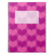 Carnet de notes à spirale avec l'espace rose mignon de motif et d'étiquette de coeur. Motif/copie romantiques avec de beaux coeurs roses et pourpres