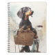 Une superbe couverture de carnet avec un dachshund assis fièrement dans un panier en osier, prêt à l'aventure à travers de charmantes rues de ville. Avec son regard curieux et son esprit ludique, ce design capte la joie et la compagnie du meilleur ami de l’homme. Parfait pour les amateurs de dachshund, les propriétaires de chiens, ou toute personne qui adore l'art fantasque, charmant le coeur.