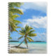 Carnet avec le palmier accrochant sur une plage blanche de sable d'une île tropicale dans l'océan pacifique appartenant à la Polynésie française d'archipel du Tahiti.