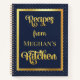 Le carnet de recettes bleu marine moderne a un bord de pois doré, puis une bande de feuille d'or autour d'un arrière - plan bleu marine solide. Les mots Recettes et Cuisine sont aussi faits en feuille d'or. Personnalisez-le en utilisant le lien "personnaliser ce modèle".