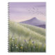 Un doux flanc de colline recouvert de fleurs sauvages au crépuscule, avec des ciels de lavande doux et un troupeau d'oiseaux qui volent à travers l'horizon. Une montagne lointaine est baignée dans la dernière lumière du jour, créant une couverture de carnet calme et paisible pour la journalisation et l'introspection.