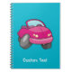 Voiture de dessin animé en jouet rose. Couleur arrière - plan personnalisée. Texte personnalisé.
