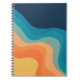 Ondes de style rétro illustration motif géométrique avec décor rayures jaunes, orange, bleues, bleu marine et turquoise
