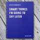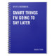 Carnet amusant pour les collègues de bureau, les gestionnaires, les amis de travail ou d'autres professionnels de l'administration et des affaires. Personnalisez le nom à imprimer en bas de la couverture "Smart Things I'm Going to Say Later". Les carnets personnalisés sont parfaits pour les anniversaires de travail, les vacances, les échanges de cadeaux de bureau et plus encore. Surprenez votre collègue ou ami avec un cadeau qu’ils aimeront utiliser!