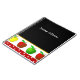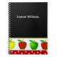 Le carnet du professeur d'amusement fait dans le noir, avec des graphiques des pommes colorées et d'une bande rouge et blanche de point de polka, à travers le fond. Le texte blanc est entièrement personnalisable pour lire quelque chose que vous voulez. Personnalisez pour vous-même ou comme grande idée de cadeau à votre professeur préféré.