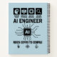 Ce design d'ingénieur en intelligence artificielle drôle est parfait pour quiconque est passionné par le codage, l'apprentissage automatique et l'intelligence artificielle. Caractérisé par un style propre et moderne inspiré de la technologie avec un thème de café humoristique, il est idéal pour les programmeurs, les développeurs, les scientifiques de données et les geeks de la technologie. Une excellente idée de cadeau pour les amateurs de café dans le domaine de la technologie qui aiment coder et travailler sur des projets d'intelligence artificielle. Convient aux anniversaires, aux environnements de travail ou à une utilisation quotidienne décontractée.