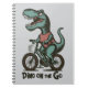 Dino en mouvement, ce design de dinosaure mignon pour enfants présente un dinosaure à vélo avec le texte « Fino en mouvement ».