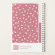 This notebook features a dusty pink background with a right-weighted floral panel scattered with small white blossoms. A narrow vertical swatch panel on the left adds subtle structure and contrast, giving the design a clean, modern balance. The white footer grounds the layout and keeps the overall look soft, calm, and thoughtfully composed.