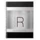 Personnalisez avec votre Monogramme et votre Nom sur métal brossé pour un look contemporain et dynamique en noir et gris. Un style simple et moderne, noir arrière - plan et gris foncé qui habillera votre carnet à la perfection. Fait un grand cadeau.