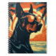 Carnet Doberman sur une plage tropicale au coucher du sol