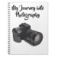 Chic and simple notebook design featuring a simplified photograph of a modern DSLR camera. Document your Journey into Photography with your ideal camera settings for flower photography, street photography, portraits,.....