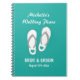 Échouez le carnet de wedding planner de thème ou le journal avec des bascules électroniques de coeur conçoivent. Organisateur mignon pour les couples engagés/futurs jeunes mariés prévoyant leur partie de mariage. Typographie élégante de manuscrit avec des pantoufles de plage. Joli arrière - plan ou personnaliser de bleu d'aqua/turquoise. Faites votre propre petit livre pratique pour pour faire la liste, le budget, les coûts, les notes et les plans. Typographie manuscrite de style avec des sandales d'été. Été épousant en juin, juillet, auguste.