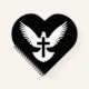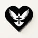 Silhouette de colombe blanche avec ailes ouvertes et croix sur fond noir.