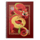 Les dragons rouges chinois sont des créatures mythiques qui symbolisent la chance et le pouvoir (les deux symboles dans ce dessin). Ils sont aussi l'un des signes chinois du zodiaque. Illustration graphique sur le carnet spiral pour les amateurs de dragons et de mythologie chinoise.