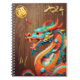 Cute Dragon (illustration) + Idéogramme Fu (pour la chance) + 2024 + "Année du Dragon" et Monogramme pour customiser en "bois" (image imprimée) en arrière - plan. Conception sur carnet spiral de base. Parfait pour le Nouvel An Chinois du Dragon 2024 ou anniversaire (personnes nées dans l'année Dragon). — "Le Dragon (chinois simplifié : 龙; chinois traditionnel : 龍) est l'un des 12 ans de cycle des animaux qui apparaissent dans le zodiaque chinois lié au calendrier chinois. L'année du dragon est associée au 辰 du symbole de la branche terrestre, prononcé chen. Un chercheur universitaire a proposé que le caractère de la branche terrestre ait été associé à des scorpions; il aurait pu symboliser l'étoile Antarès." On peut dire que les personnes nées dans ces plages de dates sont nées dans l'"Année du Dragon", tout en portant le signe élémentaire suivant : 22 janvier 1928 - 9 février 1929 = Earth Dragon, 8 février 1940 - 26 janvier 1941 = Metal Dragon, 27 janvier 1952 - 13 Février 1953 = Dragon d'Eau, 13 février 1964 - 1er février 1965 = Dragon de Bois, 31 janvier 1976 - 17 février 1977 = Dragon de Feu, 17 février 1988 - 5 février 1989 = Dragon de Terre, 5 février 20 20 - 23 janvier 2001 = Dragon de Métal, 23 janvier 2012 - 9 février 2013 = Dragon d'Eau, 10 février 2024 - 28 janvier 2025 = Dragon de Bois, 28 janvier 2036 - 14 février 2037 = Feu agon " Wikipedia