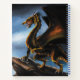 Un dragon majestueux aux écailles rouges, dorées et noires sur le bord d'une falaise avec le ciel bleu derrière.