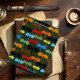 Une aile de dragons aux couleurs noir, marron, rouge, orange, jaune, bleu et vert ouvre les ailes sur un fond vert foncé et foncé qui monte en flèche. Les dragons sont dessinés dans un style de tatouage tribal.