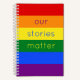 Un autre carnet coloré de JessicaAmber- renseignez-vous sur les commandes personnalisées ! Ce design présente les couleurs du drapeau gay pride : rouge, orange, jaune, vert, bleu et violet. Sur le devant du livre se trouve le slogan "nos histoires comptent", que vous pouvez éditer. Au verso se trouve une section Notes qui vous permet d'écrire des notes au fur et à mesure que vous lisez. Vous pouvez customiser tous les éléments de ce design dans Zazzle, du texte aux couleurs. ⭐ Pour plus de papeterie orgueil, consultez mon magasin Zazzle.com/JessicaAmberArtist 🔹 Pour les commandes sur mesure, envoyez-moi un message sur Zazzle