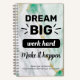Carnet Dream Big Work Hard Emerald Gold Personnalisable