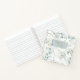 De délicats arrangements de feuillage avec de petites accents de fleurs dans des tons doux et rêvés de vert, d'or et de bleu poussiéreux avec des éclaboussures de parties scintillant, forment le motif arrière - plan pour ce design carnet élégant. Un étiquette en forme de panneau donne une place à votre nom et/ou à votre titre. Reportez-vous à ID817 pour voir d'autres produits avec design, y compris le papier à lettres mariage correspondant.