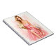 A beautiful woman in a flowing pink dress holds a bouquet of flowers and a pair of high heels in this elegant watercolor illustration.