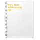 Un carnet sarcastique et minimaliste avec un texte jaune gras : "Des plans qui vont probablement échouer." Parfait comme cadeau de bâillon, journal personnel, ou planificateur pour ceux qui aiment l'humour et l'honnêteté.