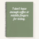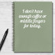 Le carnet simple et parfait pour un de ces jours...ou des semaines. Avec un joli arrière - plan vert sage, la typographie blanche moderne et audacieuse dit : "Je n'ai pas assez de café ou de doigts moyens pour aujourd'hui".