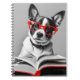Photo en noir et blanc d'un chien Lire une lecture avec un éclat de couleur cadre en verre rouge une couverture de livre