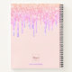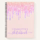 Arrière - plan rose féminin et féminin. Décoré avec des gouttes de rose et de violet. Personnalisez et ajoutez un nom, The title : sketchbook écrit avec un script de style à la main moderne et girly avec des swashes. Lettres violettes. Un carnet pour les dessins, esquisses, notes et devoirs scolaires.