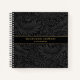 Elegant vintage black floral botanical pattern sketchbook with a custom name in gold classic serif typography and "sketchbook" in gold modern san serif typography.