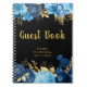 Carnet Elegant Blue and Gold Flowers Birthday Guest Book
