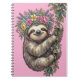 Elegant Cute Floral Sloth with Flower Crown Pink Notebook