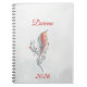 This personalized notebook features a delicate hand-drawn feather intertwined with botanical details, set against a soft watercolor wash in warm peach and golden tones. The flowing script name at the top makes it a thoughtful and refined keepsake — perfect for journaling, planning, reflections, or creative writing.