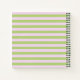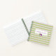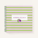 Ce bloc-notes présente des rayures horizontales lilas et vertes pastel avec un rose violet et de la verdure au-dessus d'une zone de retrait pour votre texte. Personnalisez le texte avec un nom ou des initiales ou cliquez sur personnaliser pour sélectionner le style, la taille et la couleur de la police que vous préférez. Faites-le pour vous ou un cadeau personnalisé.
