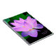 Stunning lilac lotus flower in full bloom against dark green foliage on personalized notebook.