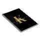 Ce carnet en spirale noir simple et élégant de 6,5 x 8,75 avec votre prénom dans une police de script tendance en blanc tapé sur votre première initiale dans une police casquette moderne en or est parfait pour vous. C'est design, tendance et pourtant très classique. Il sera utile dans tant de situations. Parfait pour le travail, la maison, l'école, le journalisme.