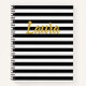 Personnalisez avec votre nom (ou autre texte) en faux (pas de feuille) script or sur un carnet rayé noir et blanc.