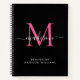Élégant noir Hot rose Magenta Monogramme Script initial Nom Carnet de recette