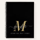 Noir Blanc Or Elégant Journal Personnalisé Notebook avec Votre Nom dans Police de Script Lettré à la main et Typographie moderne avec Gras Monogramme Initial. Elke Clarke© Ajoutez votre nom, votre monogramme ou votre texte à l'aide du menu personnaliser.