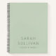 Carnet élégant avec votre nom et texte dans une police moderne sur un arrière - plan vert sauge clair.