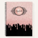 Ce carnet de croquis personnalisé de 8,5 x 11 a un monogramme noir et blanc sur une belle feuille faux rose et arrière - plan parties scintillant dégoulinant. Personnalisez-le pour l'artiste girly de votre vie. Fait un cadeau amusant pour les anniversaires et Noël. Conçu pour vous par Blackberry Boulevard.