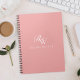 Create your own custom notebook with personalized monogram initials in elegant modern typography on pink color background.