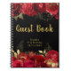 Carnet Elegant Red and Gold Flowers Birthday Guest Book