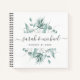 Ce livre d'hôtes de calligraphie moderne est parfait pour un design mariage simple mais beau. L'illustration douce de la verdure d'aquarelle présente vos noms et votre date mariage dans la typographie minimaliste, ainsi qu'un script romantique et fantaisiste.