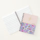 Magnifique cahier à monogramme en faux or associé à un jardin de fleurs roses et bleues. Le dos est recouvert de rose et comprend un petit cœur.